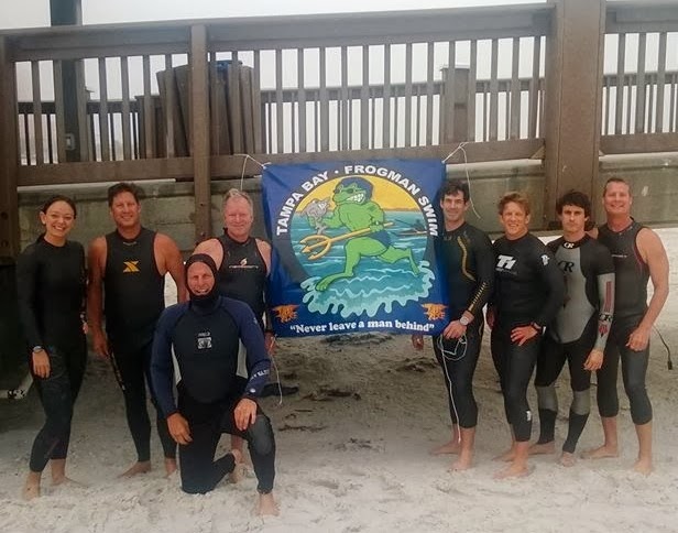 Saturday – 1.5 mile open water swim with my Frogman buddies. This swim was TOUGH. The water temp was 58 degrees and the current was intense. Thank goodness for my new buddy Dan who hung with me and gave me a push at the start to get going.